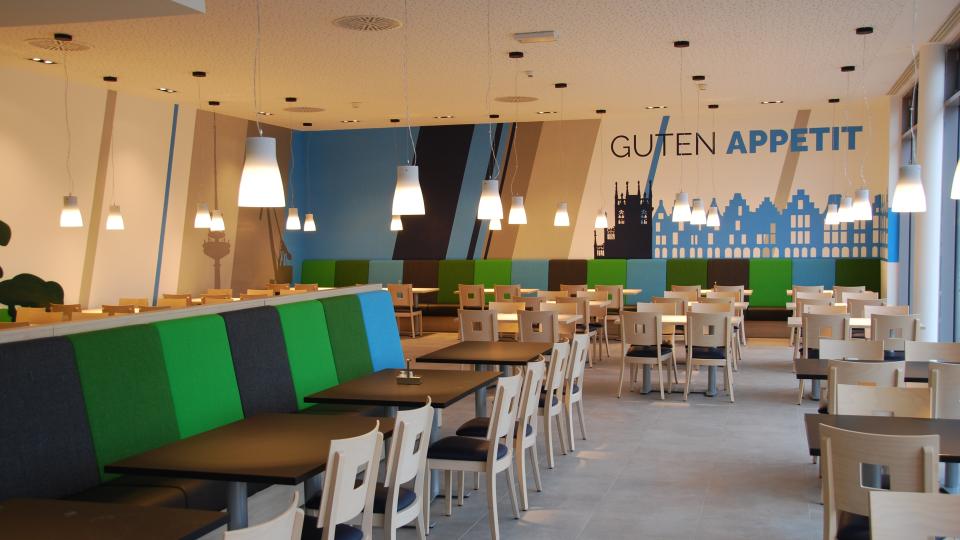 In Münster am Domplatz 1-3 sorgt Christoph Schwarzer und sein Team für eine ausgewogene Frühstücks- und Mittagsverpflegung. In der Kantine am Standort Zentrum Nord sorgt die Firma Urban Bull für ein gleichlautendes Angebot.