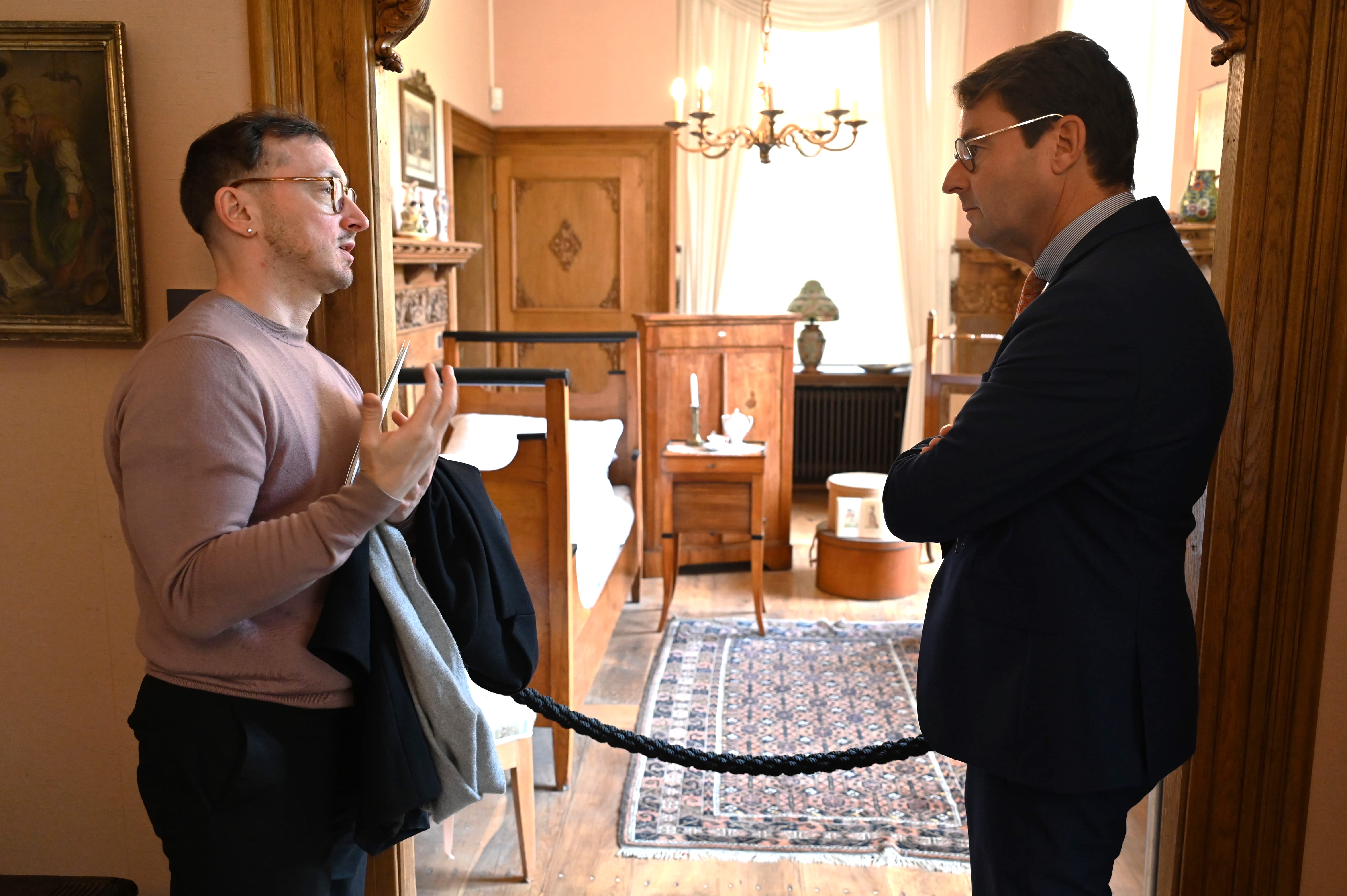 „Droste Welten vereint unterschiedlichste Ansätze auf eindrucksvolle Weise: Natur und Kultur, Wissensvermittlung und künstlerische Formate, analoge und digitale Elemente. Selbst die Denkmalpflege wird hier mit aktiver Partizipation verbunden. Dieses Zusammenspiel macht das Projekt zu einem besonderen Modellvorhaben, das weit über die Region hinausstrahlen kann. Ich freue mich, dass wir mit der Förderung einen so vielseitigen Impuls für die kulturelle Zukunft setzen können“, betonte Regierungspräsident Andreas Bothe heute (26. September) bei der Übergabe des Förderbescheids auf Burg Hülshoff.