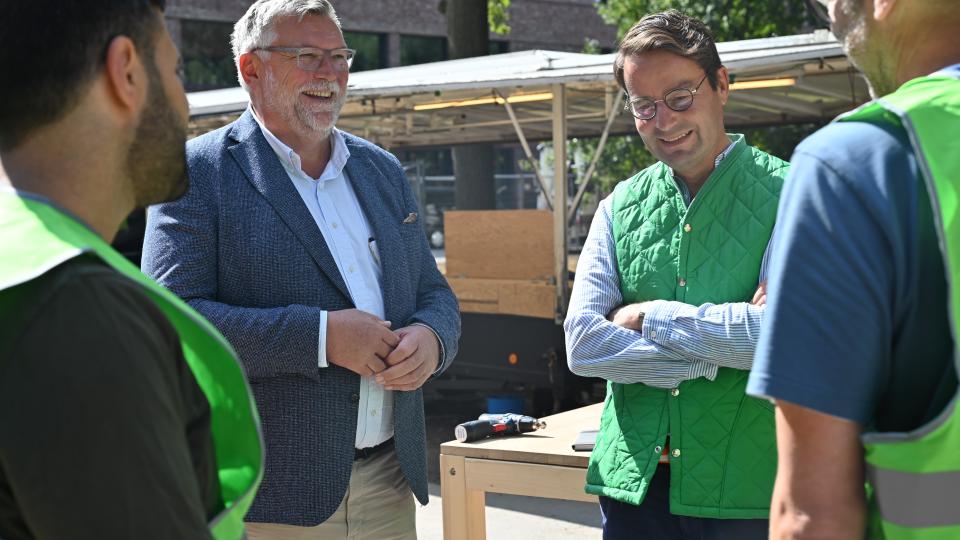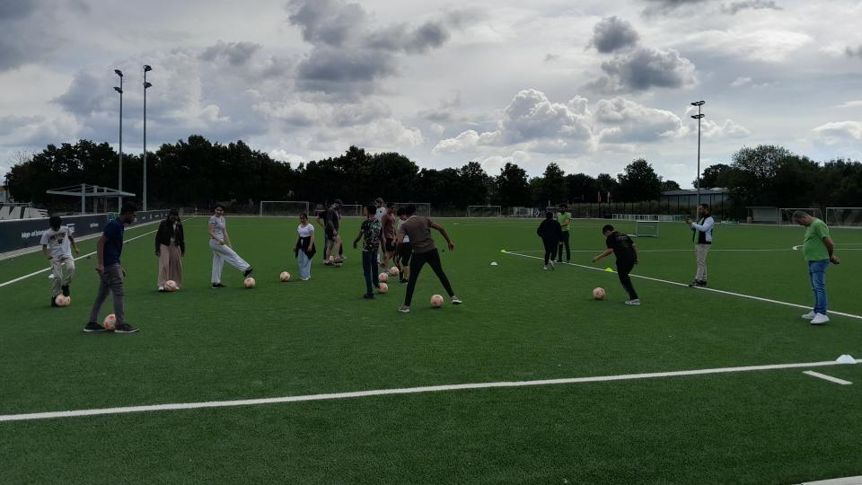 Die vergangene Woche stand ganz im Zeichen dieses Modellprojektes. Höhepunkt waren am Samstag (30.08.25) ein Tag in der Möbelwerkstatt des Zentrenbeirats Gremmendorf, in der Bewohner:innen der ZUE gemeinsam mit Nachbarn aus dem York-Quartier Sitzgelegenheiten für den öffentlichen Raum gebaut haben, und ein Fußballturnier für Groß und Klein des SC Gremmendorf, das mit großer Unterstützung des Projektpartners SC Preußen Münster begleitet wurde und an dem auch die „ZUE Allstars“, eine Mannschaft der ZUE-Bewohnern, teilgenommen hat.