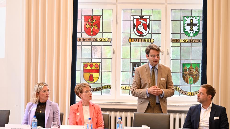 Zum Auftakt der Veranstaltung begrüßte Regierungspräsident Andreas Bothe alle Anwesenden: „Mit dem Modellprojekt Integration setzen wir ein starkes Zeichen für einen aktiven Integrationsansatz. Wir wollen Integration hier vor Ort nicht nur verwalten, sondern mit vielen großen Institutionen in Münster gemeinsam gestalten – und den Menschen in der ZUE Münster konkrete Perspektiven ermöglichen. Das gelingt nur durch partnerschaftliche Zusammenarbeit. Genau diese Partnerschaft wollen wir heute vertiefen.“