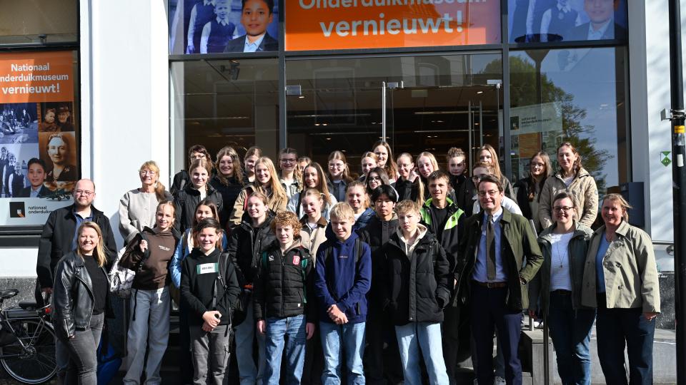 Im Anschluss besichtigten die Schüler:innen gemeinsam mit dem Regierungspräsidenten das Onderduikmuseum. Das Geschichtsmuseum thematisiert den Widerstand und das Leben untergetauchter Menschen während des Zweiten Weltkriegs und gilt als wichtiger Lernort für historisch-politische Bildung und Erinnerungskultur in den Niederlanden.