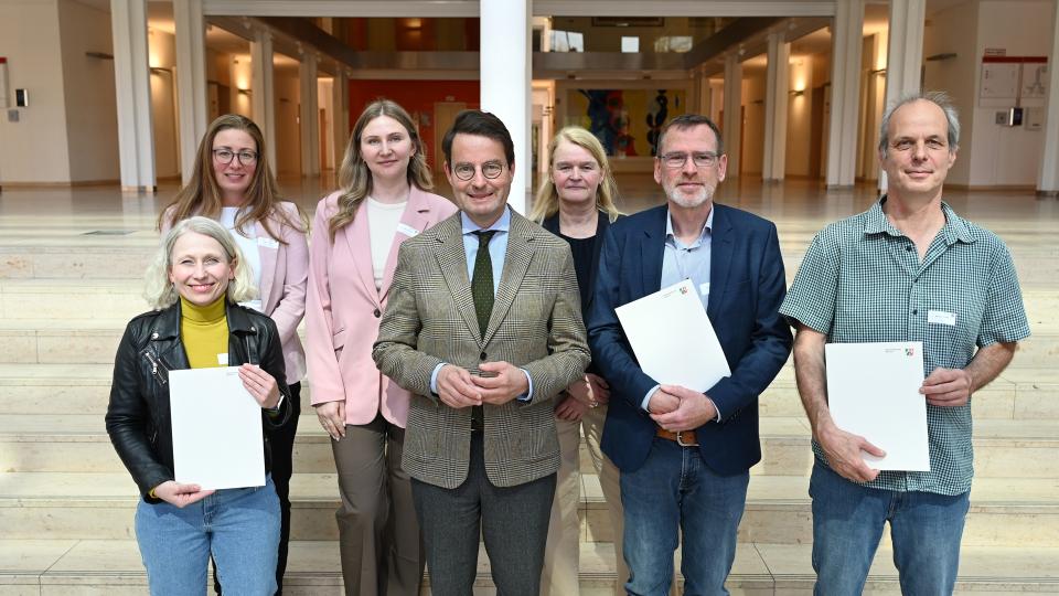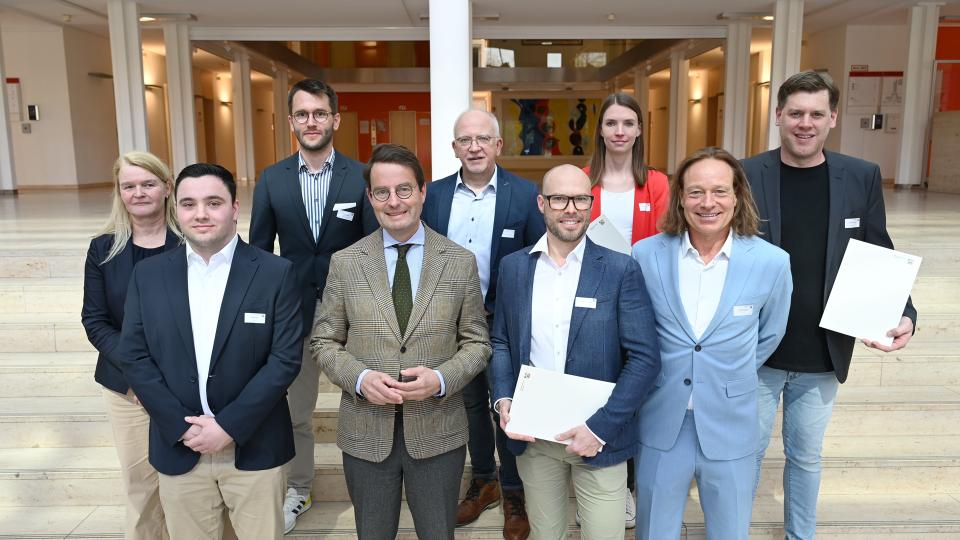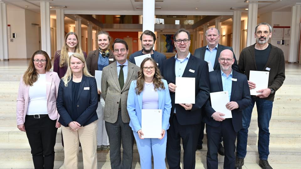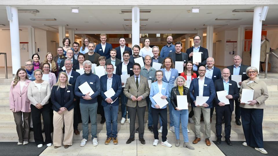 Münsterland/Emscher-Lippe-Region.  Rund 21 Millionen Euro fließen aus dem EFRE/JTF-Programm in die Region. Regierungspräsident Andreas Bothe hat gestern (9.4.) insgesamt 29 Förderbescheide für sechs Verbund- und zwei Einzelprojekte überreicht.
