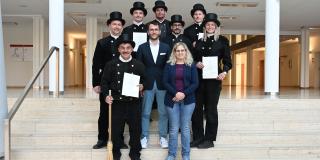 Bezirksregierung Münster 02.10.2025 Pressemitteilung Neue Schornsteinfeger:innen für den Regierungsbezirk Münster ie bringen Glück, sorgen mit ihren Hausbesuchen für Sicherheit und leisten einen großen Beitrag zum Klimaschutz: Die Rede ist von den Schornsteinfeger:innen der Region.