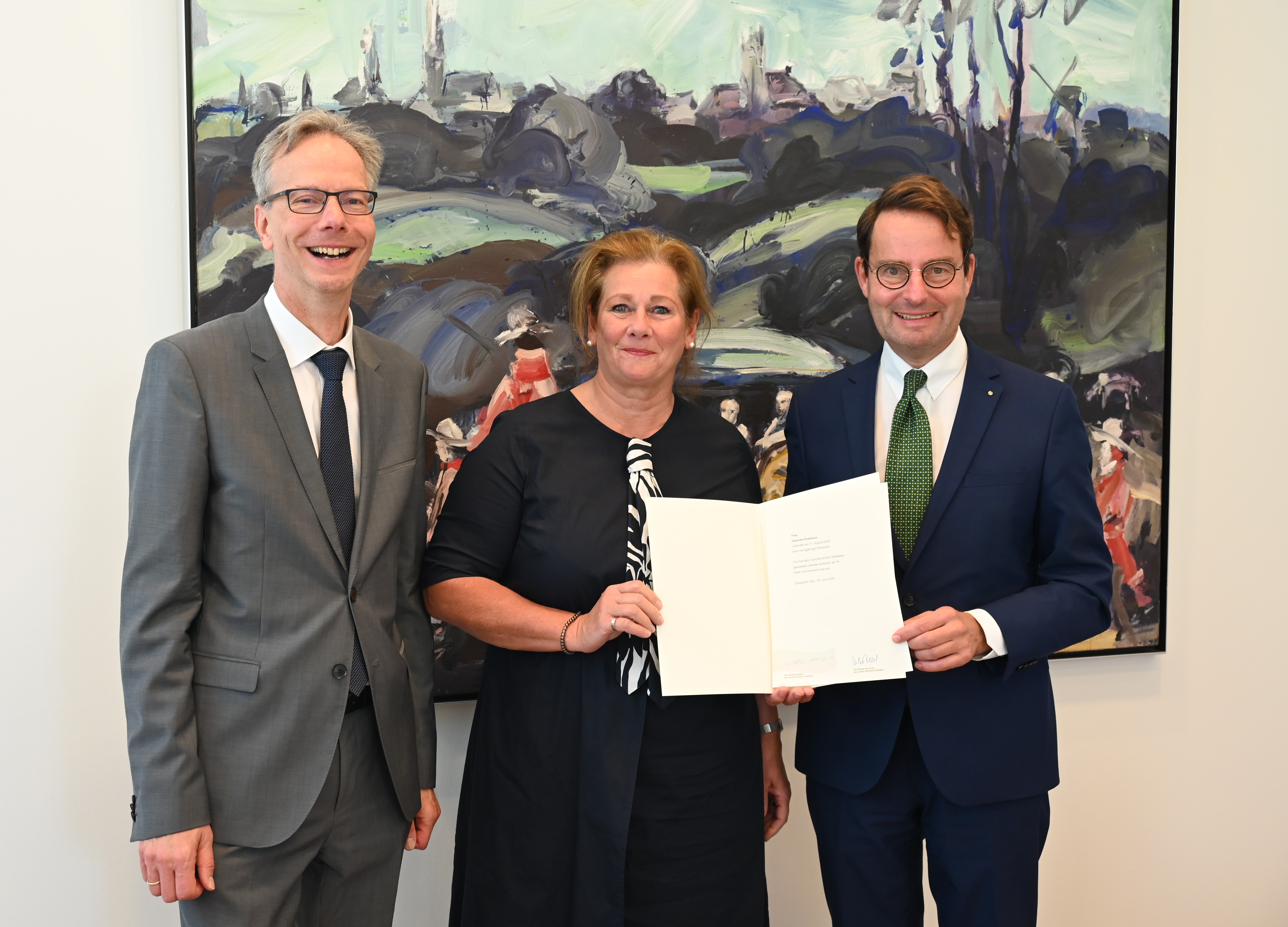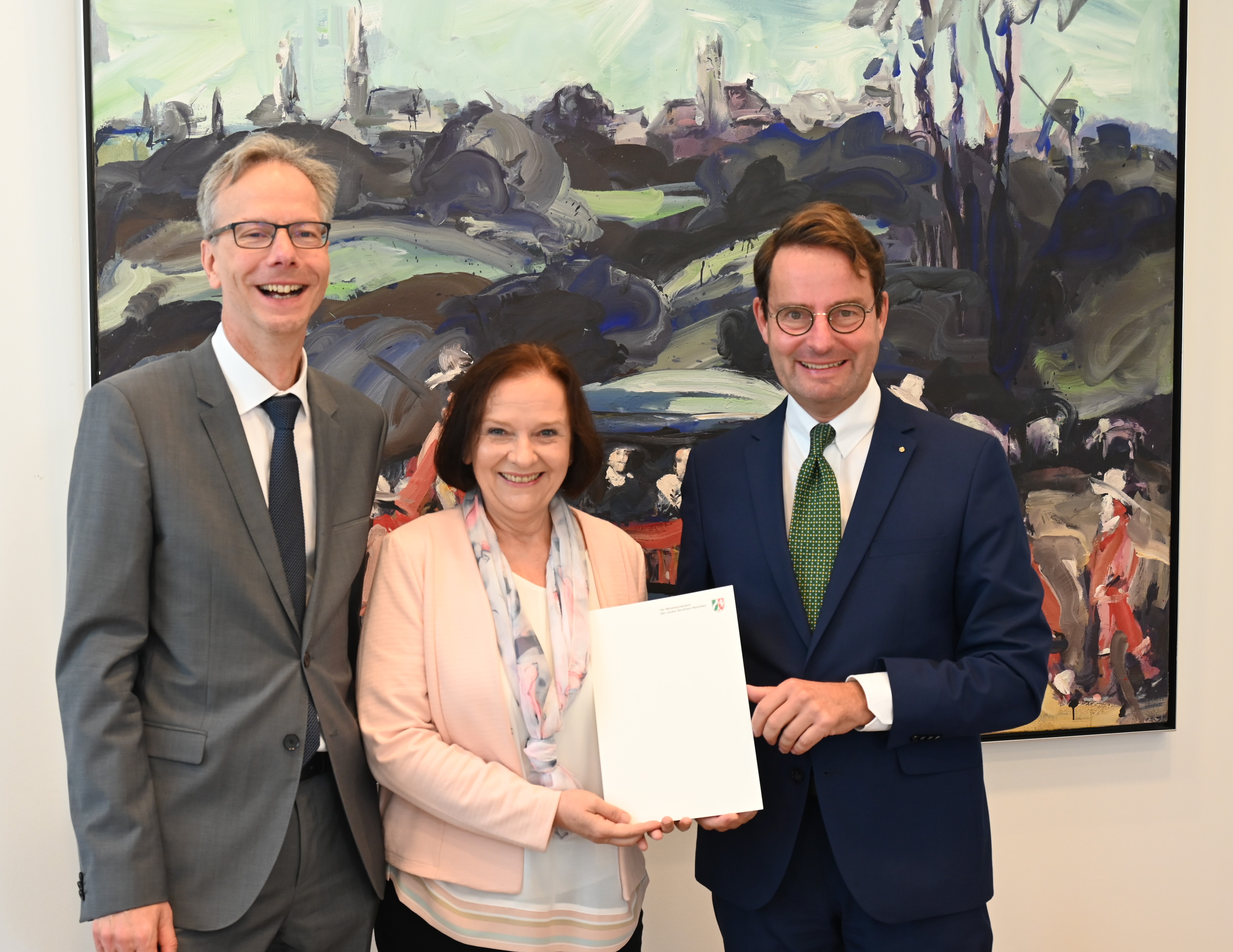 - v.l. Regierungsvizepräsident Dr. Ansgar Scheipers, Sonja Smodis und Regierungspräsident Andreas Bothe / ©Bezirksregierung Münster