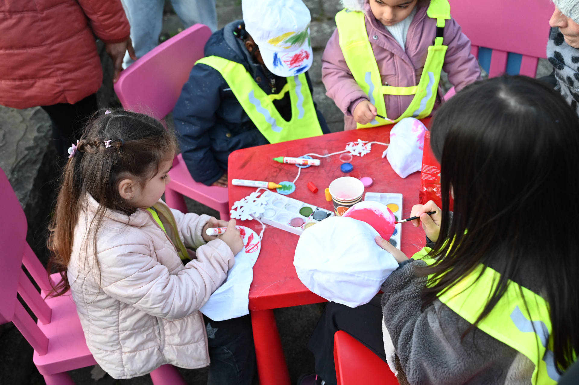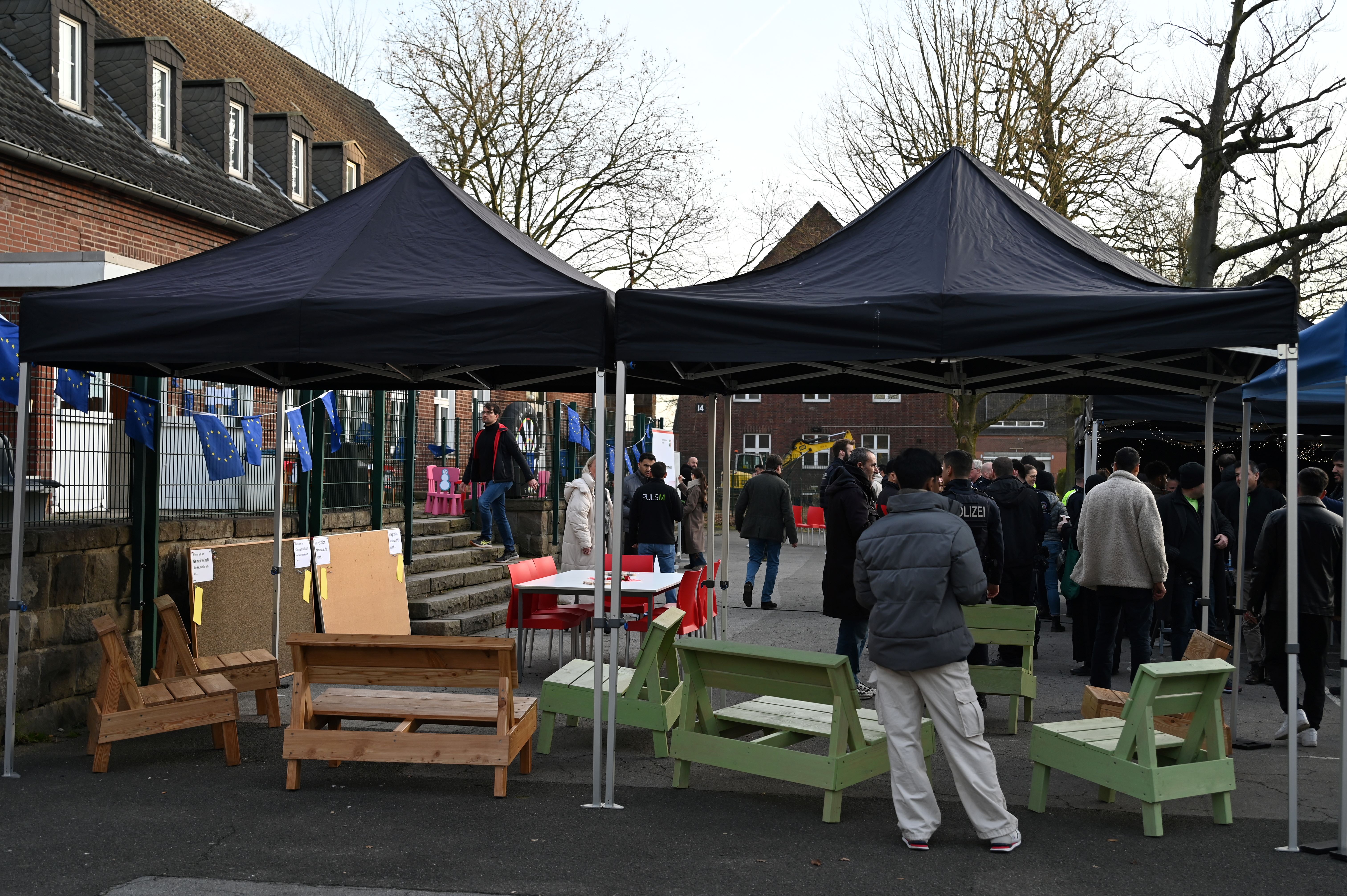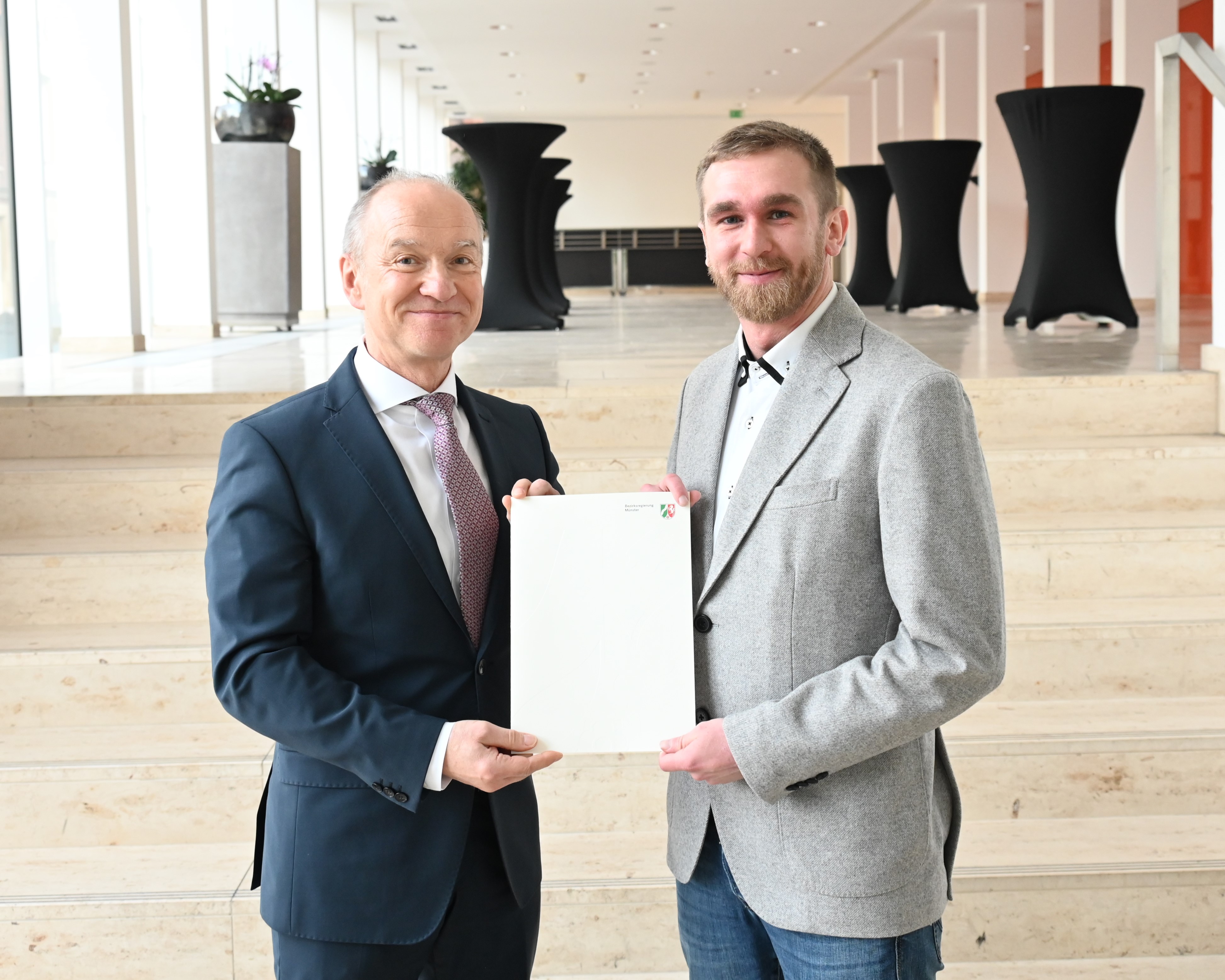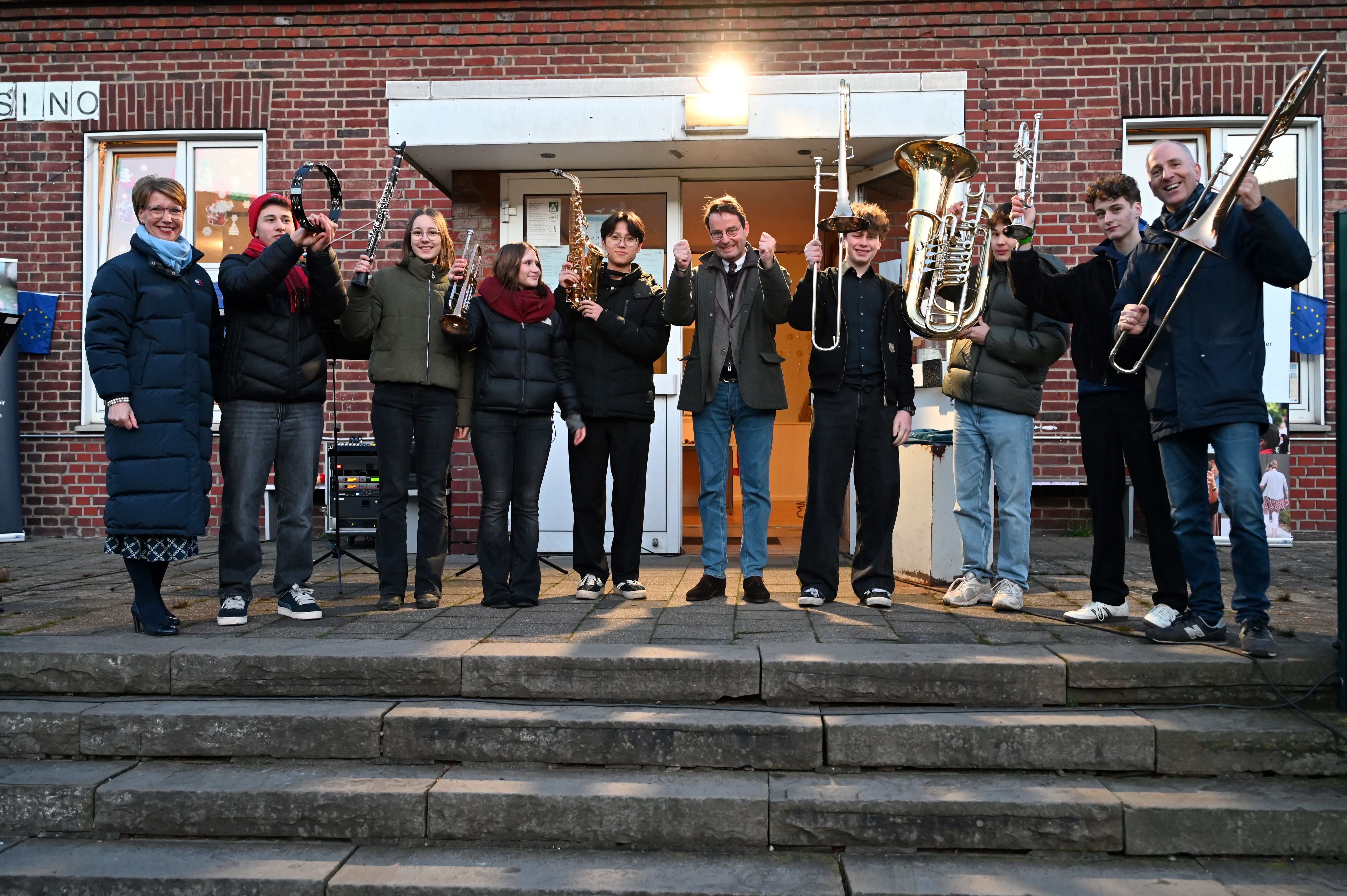 Polizeipräsidentin Alexandra Dorndorf (l.) und Regierungspräsident Andreas Bothe (2.v.l.) freuten sich zusammen mit allen Gästen über das Lied „O Tannenbaum“, das die Kinder aus der ZUE Münster gesungen haben. / ©Bezirksregierung Münster