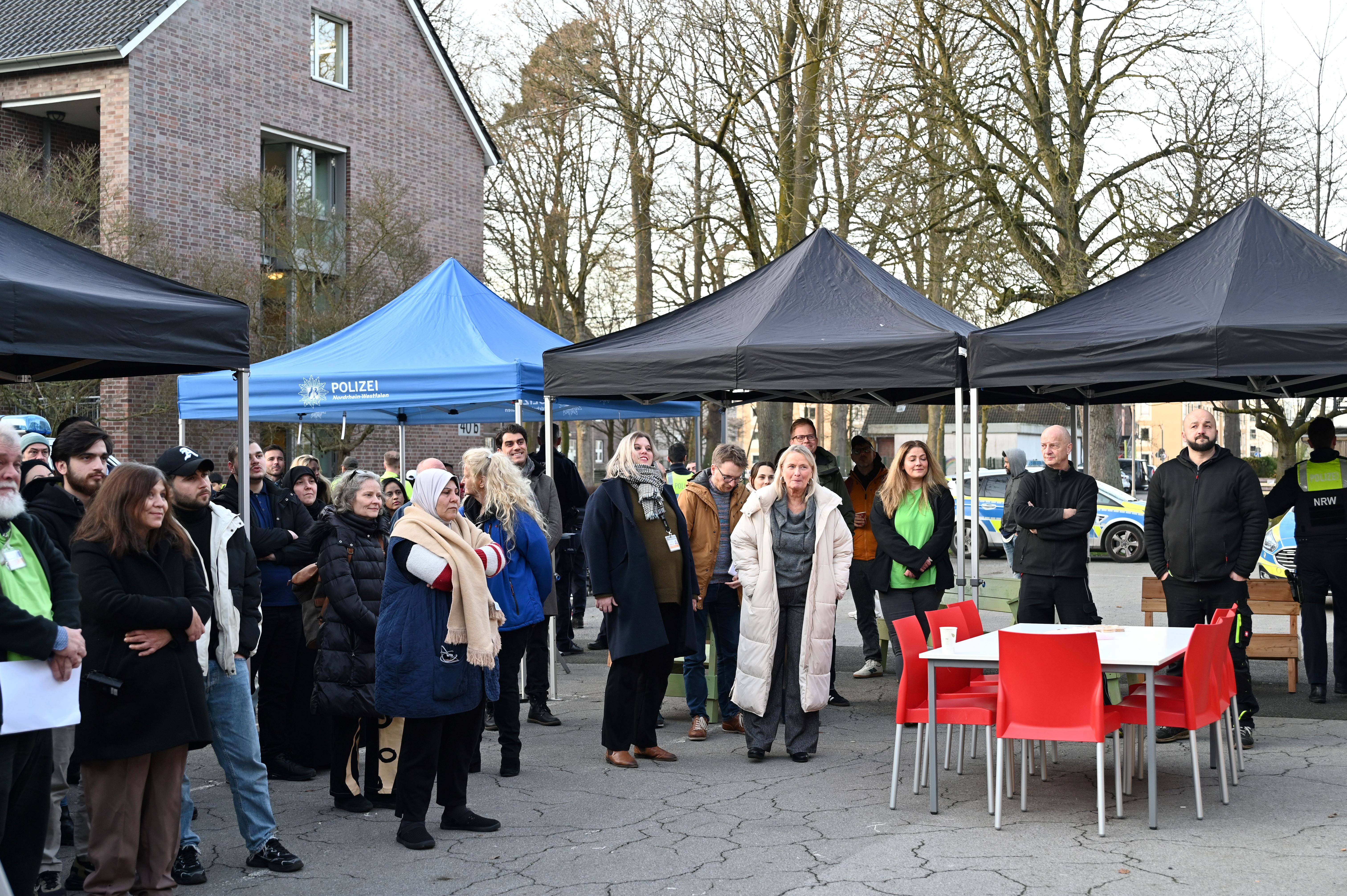 Polizeipräsidentin Alexandra Dorndorf (l.) und Regierungspräsident Andreas Bothe (2.v.l.) freuten sich zusammen mit allen Gästen über das Lied „O Tannenbaum“, das die Kinder aus der ZUE Münster gesungen haben.