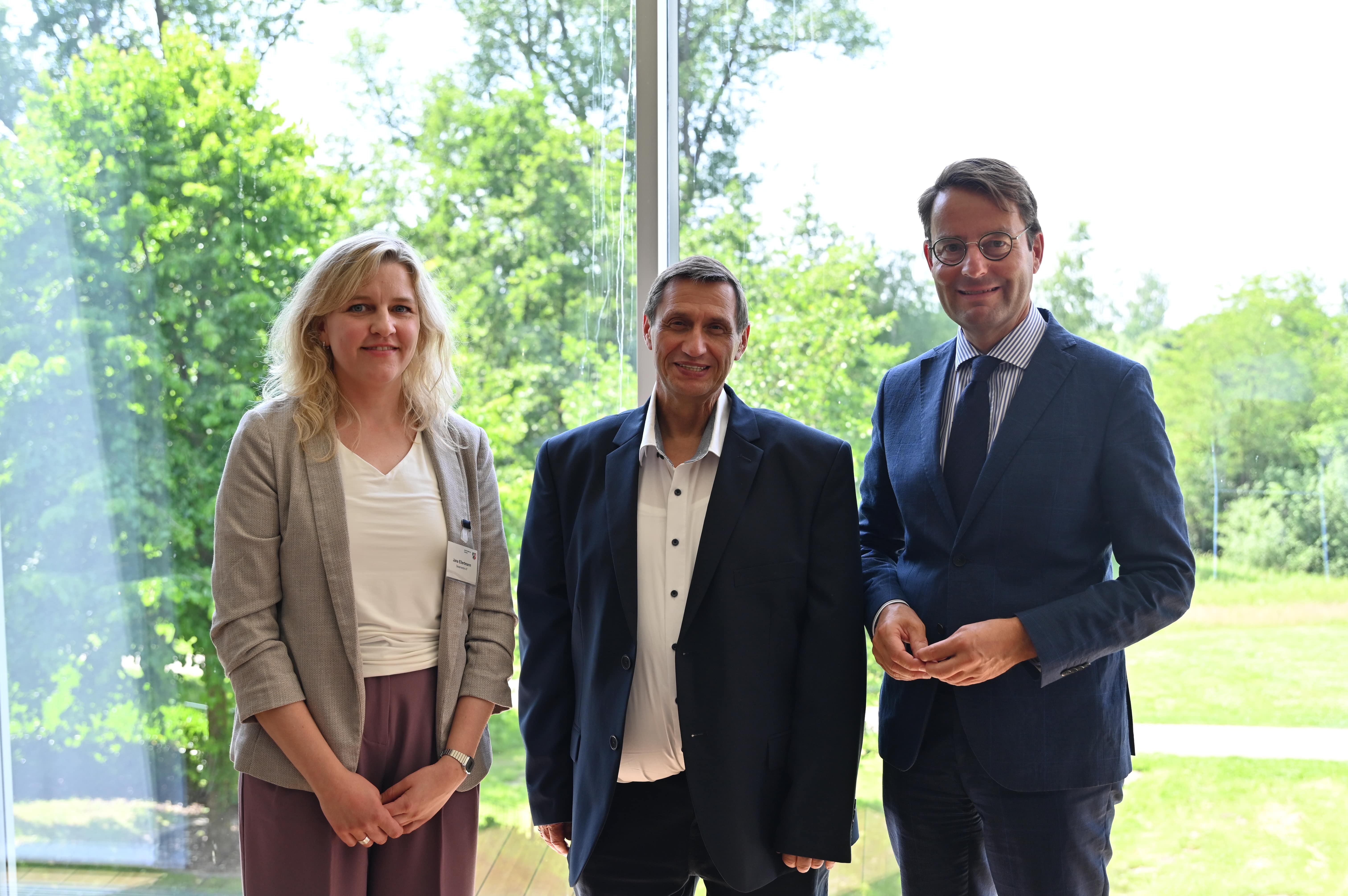 Kreis Steinfurt: (v.l.) Dezernentin für Personalangelegenheiten der Lehrkräfte Jana Ellertmann, Ulrike Berning-Jaspers und Regierungspräsident Andreas Bothe.