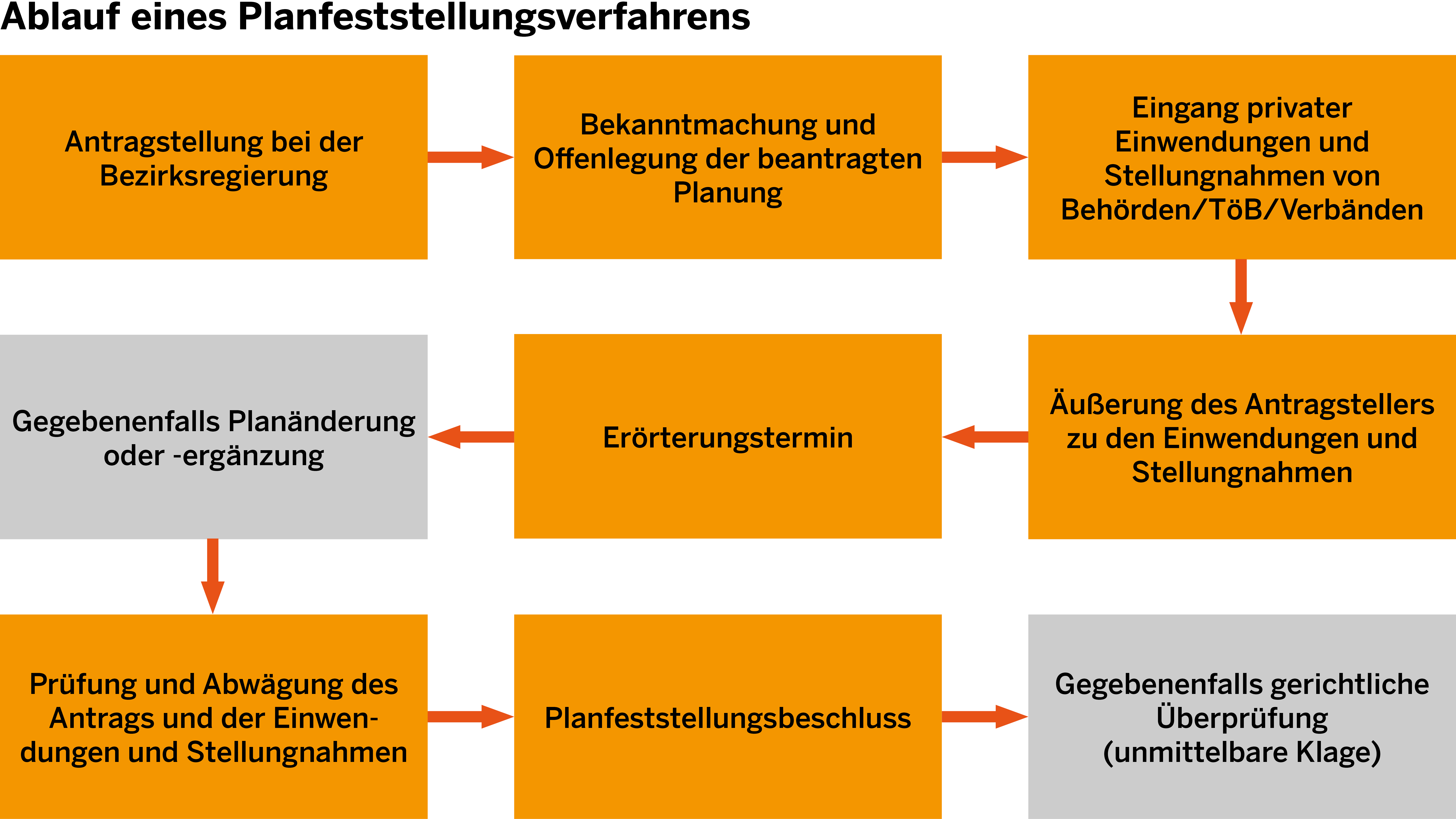 Planfeststellungsverfahren für Straßen, Schienenwege und Energieversorgungsleitungen