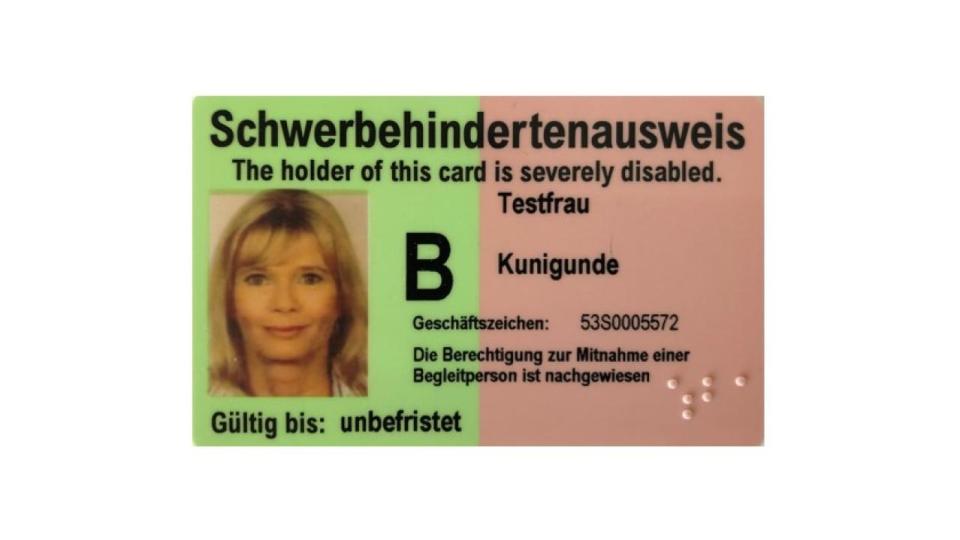 Der Ausweis kann zum Beispiel mit dem eingetragenen Merkzeichen "B" dazu berechtigen, beim Fahren mit Bus oder Bahn kostenlos eine Begleitperson mitzunehmen.