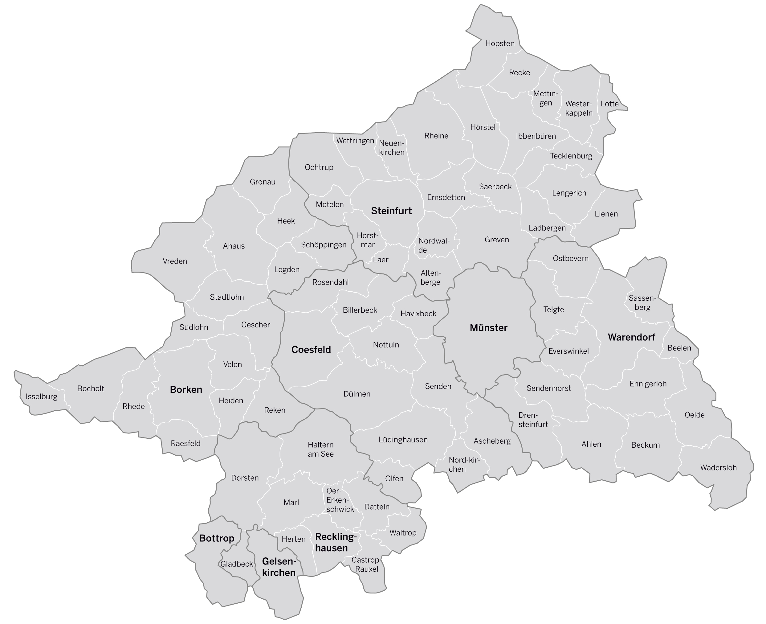 Zum Regierungsbezirk Münster gehören folgende Kreise und kreisfreien Städte: