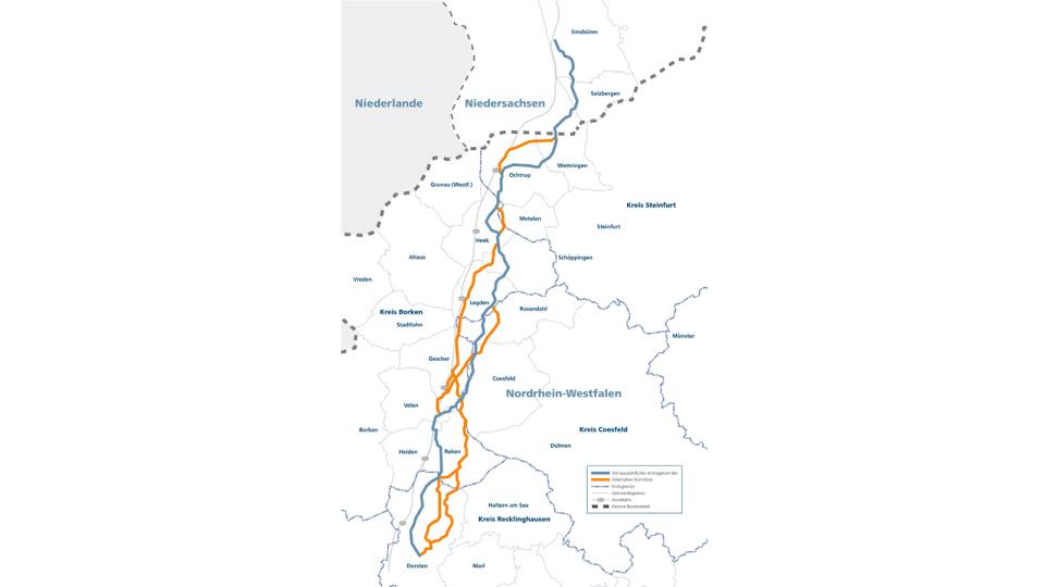 Die Vorhabenträgerin hat am 15. August 2025 die Durchführung einer Raumverträglichkeitsprüfung für den Abschnitt von der Landesgrenze Nordrhein-Westfalen/Niedersachsen bei Wettringen bis nach Dorsten (Teilstück NRW) beantragt. Es handelt sich um ein raumbedeutsames Vorhaben von überörtlicher Bedeutung. Dementsprechend wird gemäß § 15 des Raumordnungsgesetzes (ROG) in Verbindung mit § 32 des Landesplanungsgesetzes Nordrhein-Westfalen (LPlG) und § 40 der Verordnung zur Durchführung des Landesplanungsgesetzes (LPlG DVO) eine Raumverträglichkeitsprüfung durchgeführt.