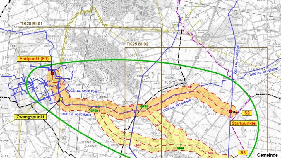 Die Vorhabenträgerin Open Grid Europe GmbH (OGE) beabsichtigt zusammen mit der Nowega GmbH eine Wasserstoffleitung (Gasversorgungsleitung) auf der Strecke von der OGE Leitung (Ltg.) Nr. 013/000/000 in der Gemeinde Heek bis zum Gasspeichergebiet in Epe (Stadt Gronau) zu errichten (ca. 10-12 km).
