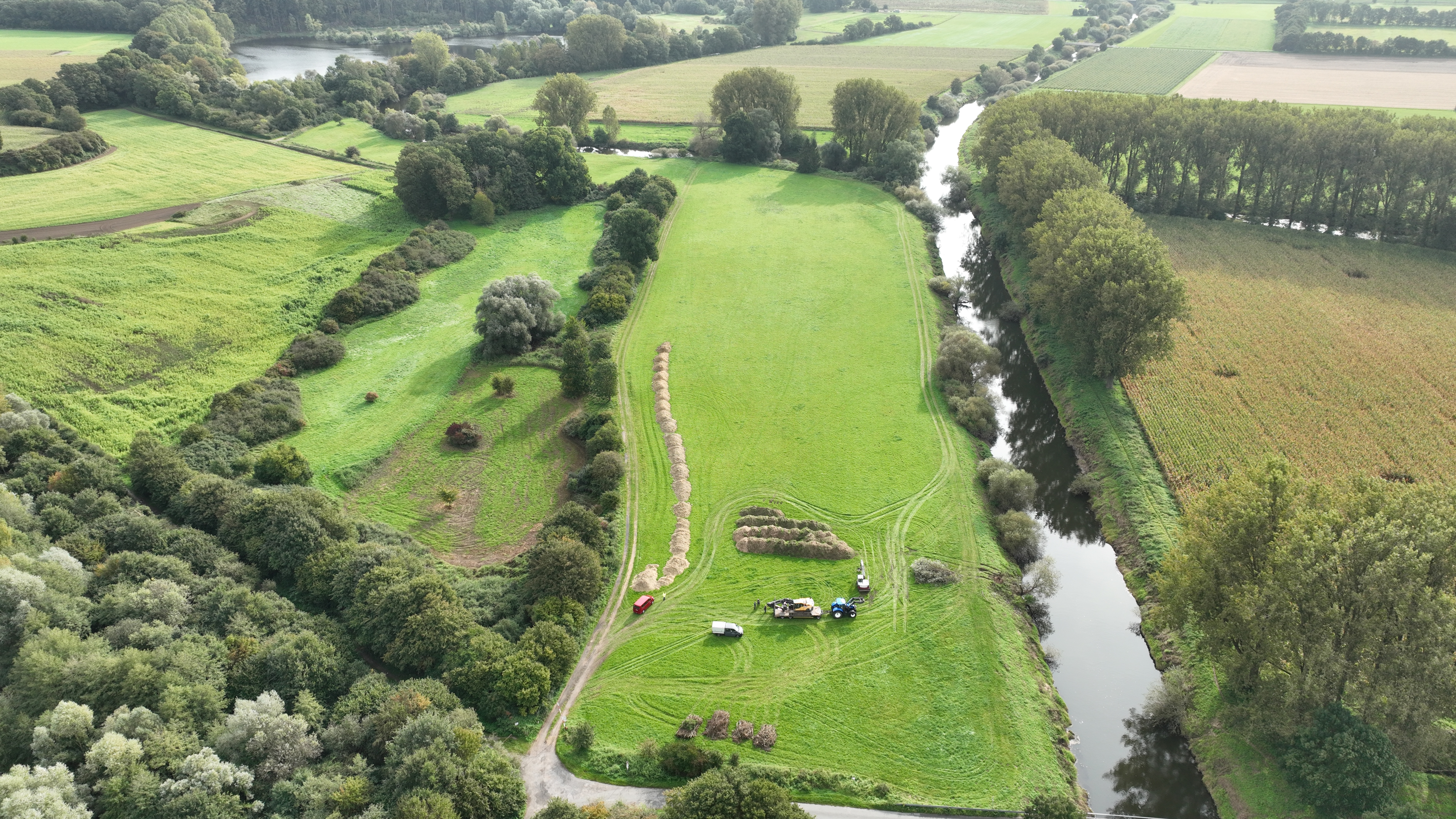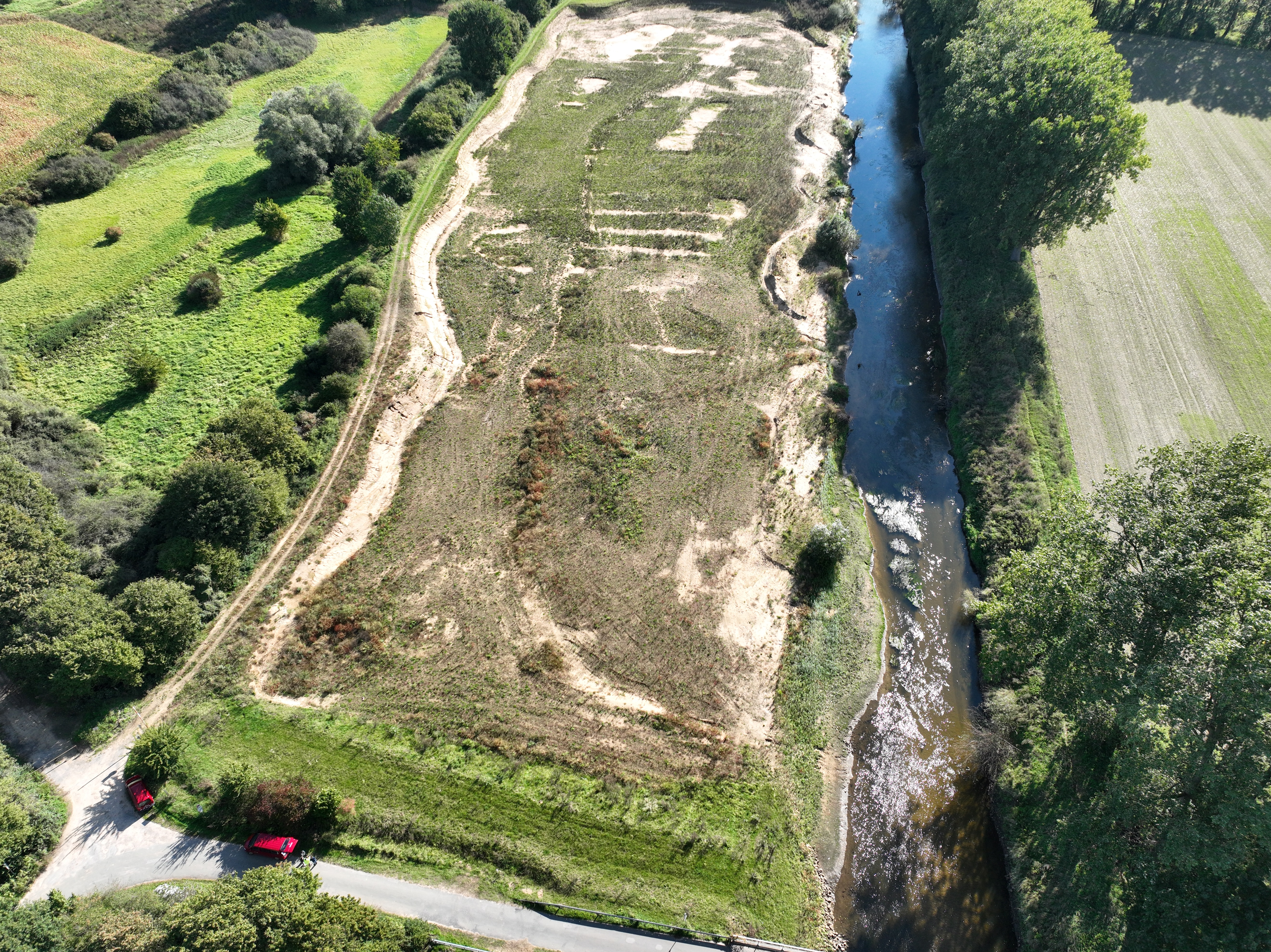 Das Höhenniveau der nördlichen (rechten) Aue wurde flächig um ca. 3,0 bis 3,5 m gesenkt und eine Flutrinne angelegt. Ziel war, eine häufigere Überschwemmung zu erreichen, natürliche Dynamik zu reaktivieren und verloren gegangene Lebensräume wiederzugewinnen. Am 24. September 2025 wurde die Baumaßnahme unter Beteiligung von Behördenvertretern, Landwirtschaftskammer und Unternehmen offiziell abgenommen. Jetzt kann auf 3 Hektar die Natur die Regie übernehmen und wir haben damit gemeinsam ein Stück EU- Wasserrahmenrichtlinie und FFH Richtline umgesetzt.